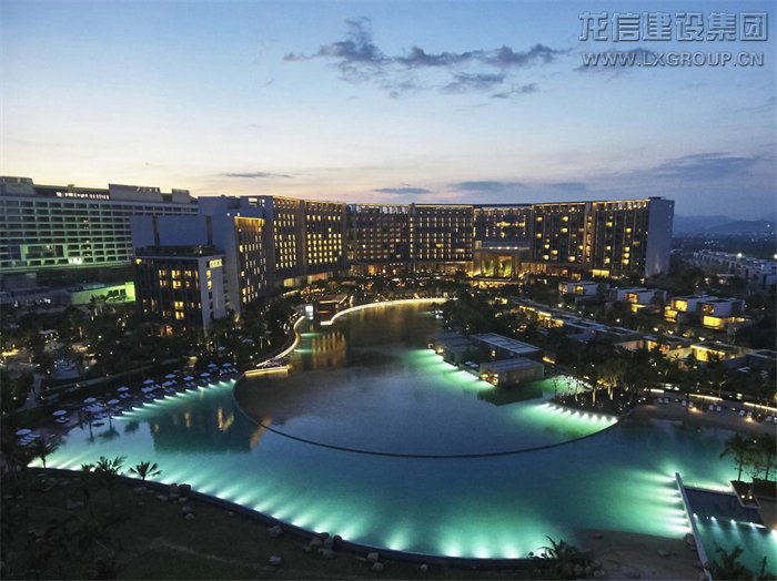 12萬(wàn)平方米,1棟酒店主體及35棟低層酒店、1棟酒店后勤和兩棟入口涼亭組成的5星級(jí)酒店
