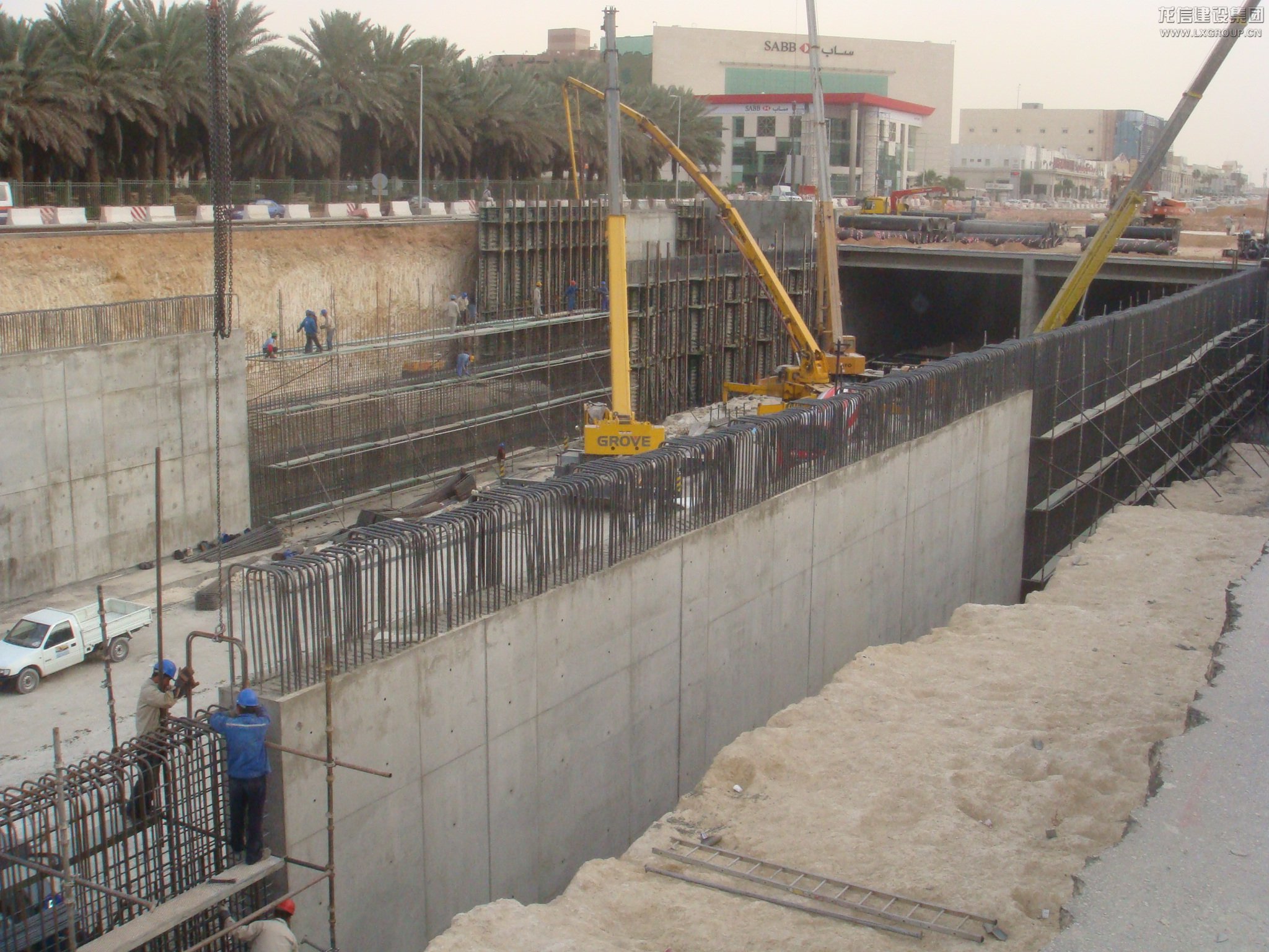 項(xiàng)目位于沙特首都利雅得市阿仆杜拉國王大道上,全長(zhǎng)5KM,分為阿卜杜拉•阿齊茲地下通道、歐萊雅路-法赫德國王路隧道、塔卡蘇斯地下通道及普瑞恩施•土耳其路地下通道??偘綖樯程貖W吉公司,龍信公司分包該項(xiàng)目的全部混凝土結(jié)構(gòu)工程,澆筑混凝土達(dá)到16萬立方,分包合同總金額為3200.00萬里亞爾。于2008年9月開工,并在2011年02月完工,工期比總包方規(guī)定的時(shí)間提前了半年,并且質(zhì)量上面受到了總包的一片好評(píng)。