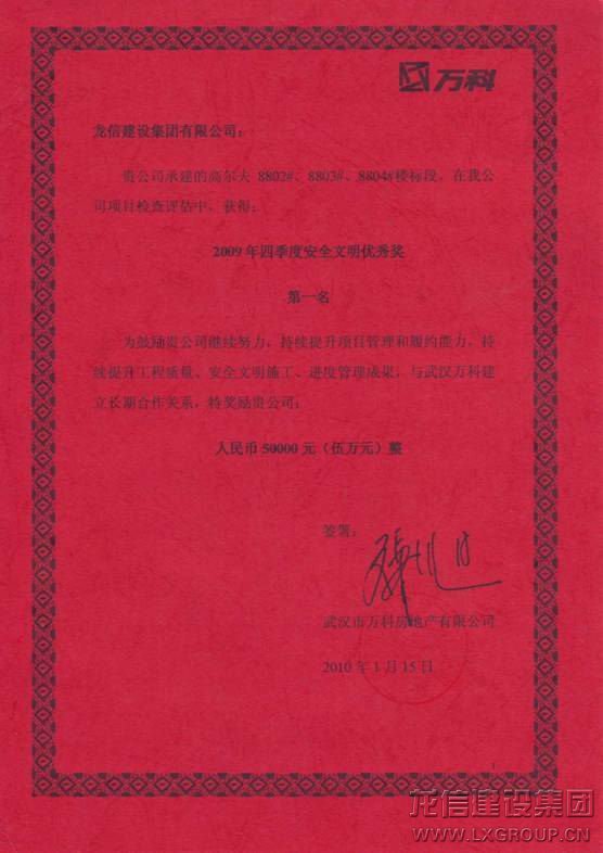 武漢高爾夫城市花園項目在2010年萬科所有項目的季度評選中所取得的優(yōu)越成績