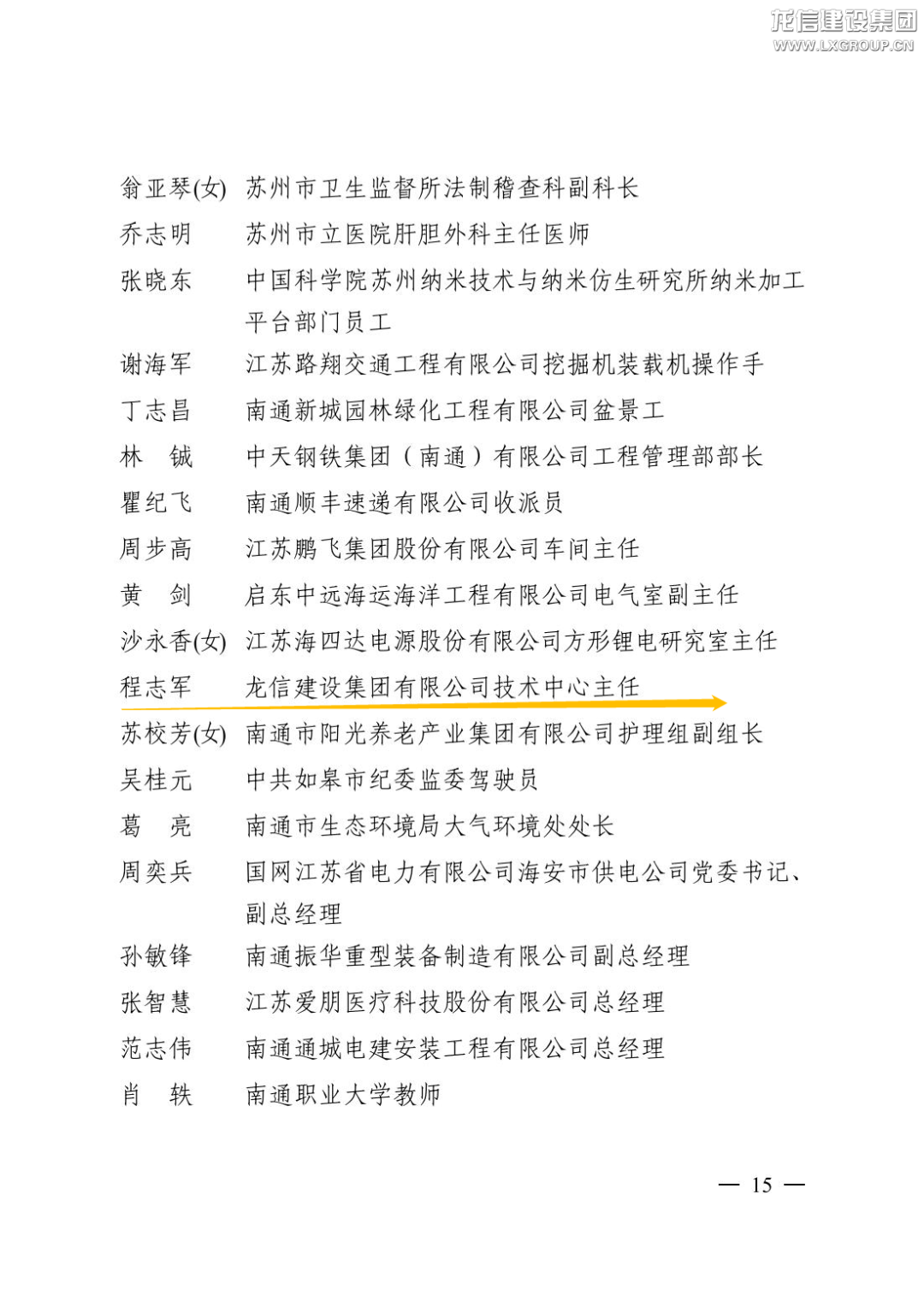 龍信建設集團技術中心主任程志軍榮獲“江蘇省五一勞動獎章”。