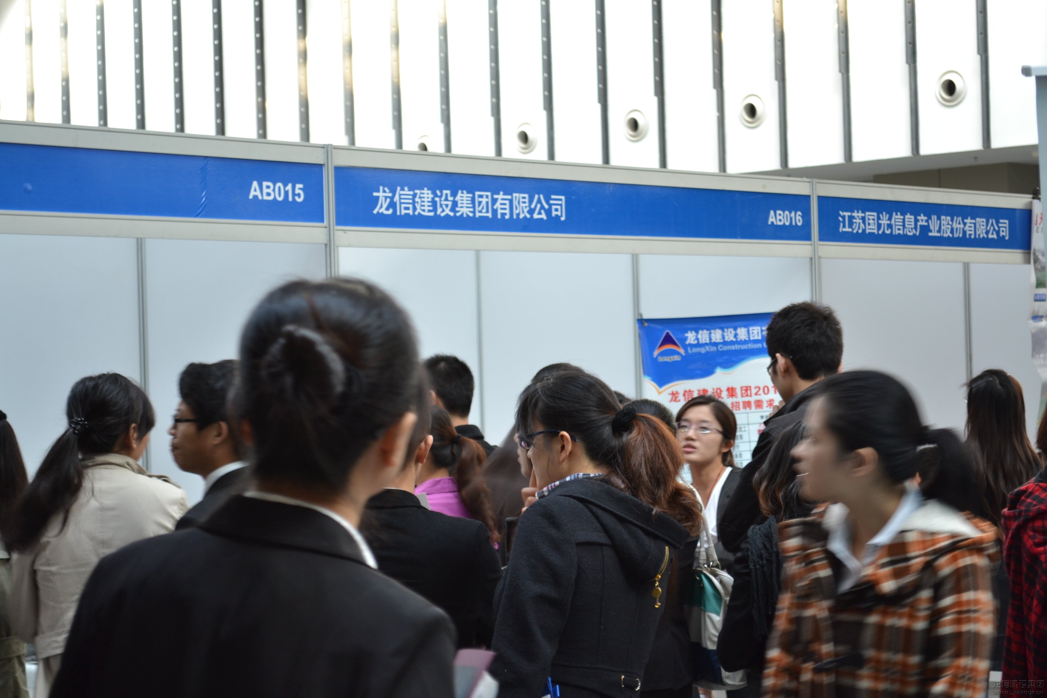 為了滿足集團內部對人才的需求,2011年11月20日至21日,龍信集團包括總部,下屬一分、三分、六分、七分、九分及十一分公司的相關人員參與了在江蘇南京國際博覽中心舉辦的大型人才招聘會。兩場招聘會主要面向2012屆本科畢業(yè)生(20號專場)和研究生(21號專場)進行招聘。在20日本科生專場招聘期間,江蘇省副省長曹衛(wèi)星至我公司招聘攤位視察,并對相關問題進行了探討和交流。